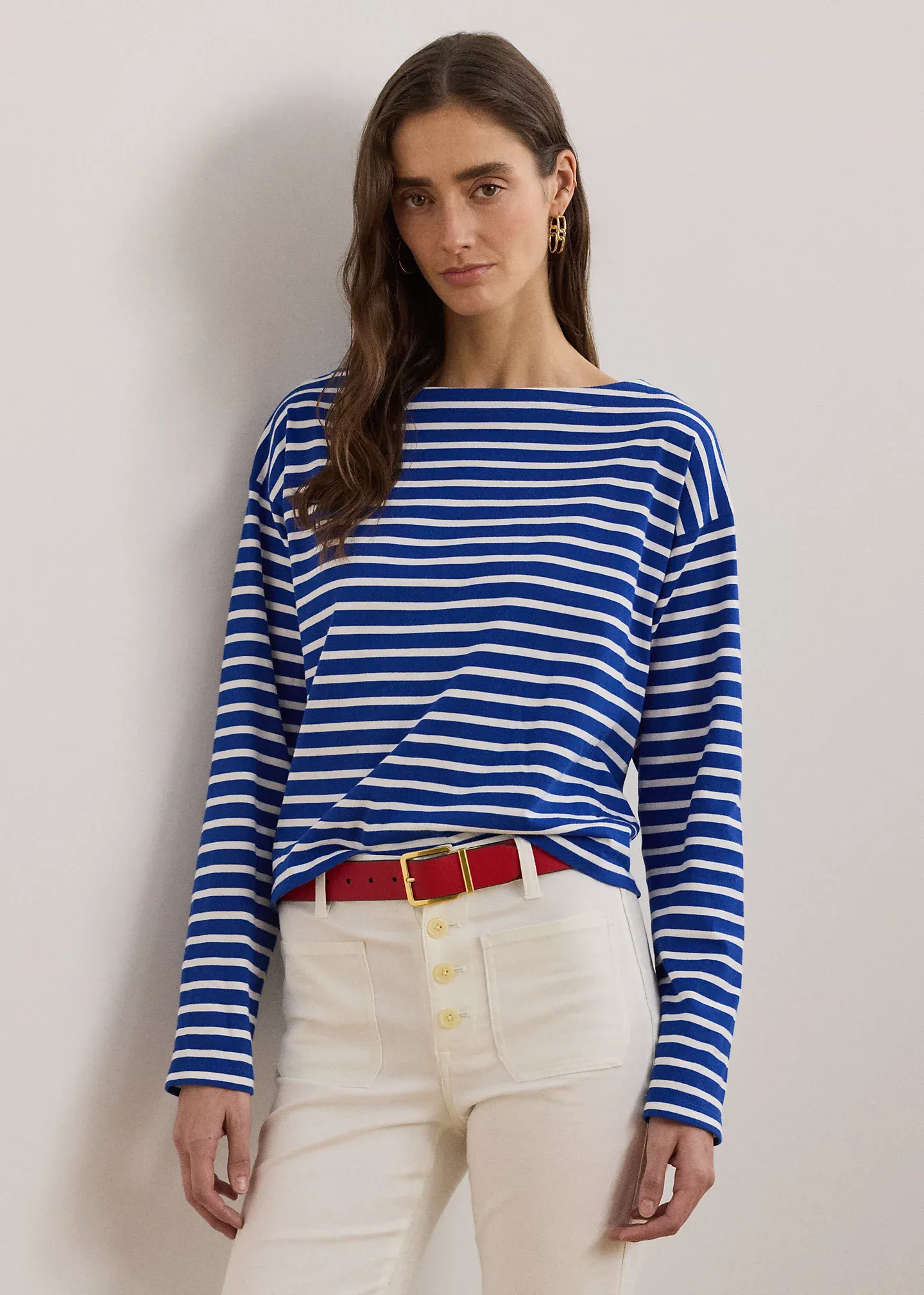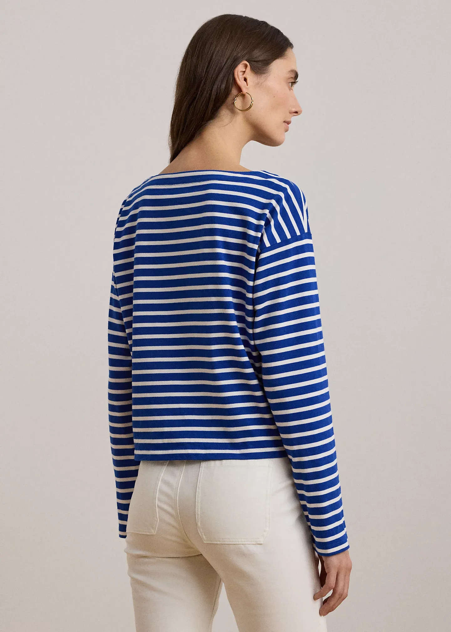 - Long sleeves. Dropped shoulders. “LRL”-embroidered logo at the front right hem.