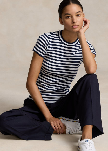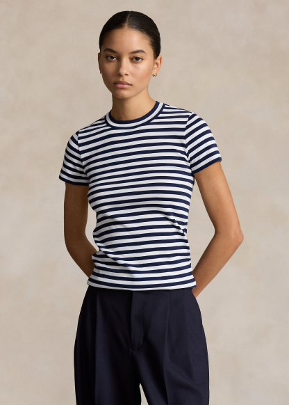 Striped Ribbed Cotton Crewneck Tee