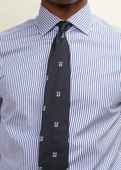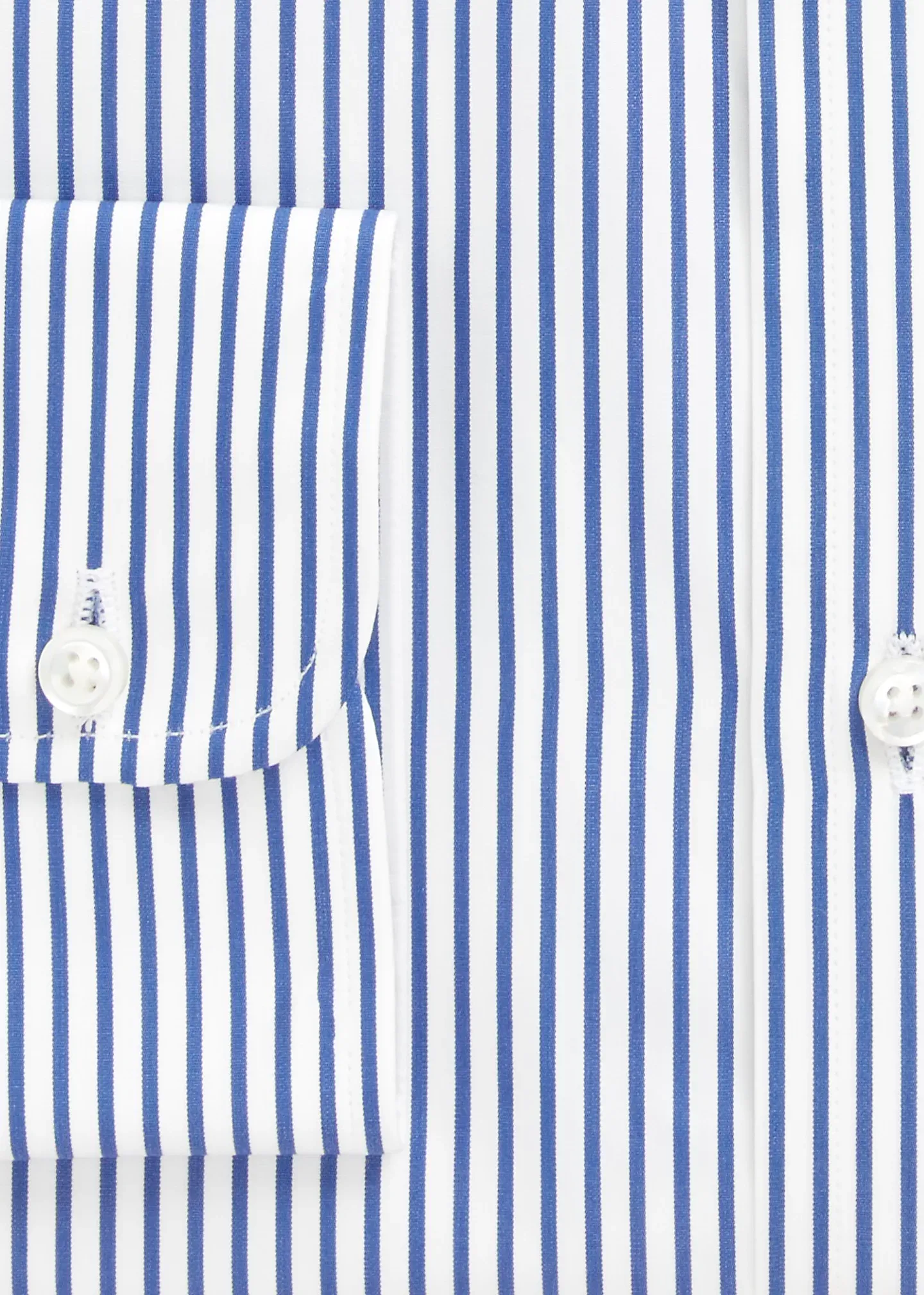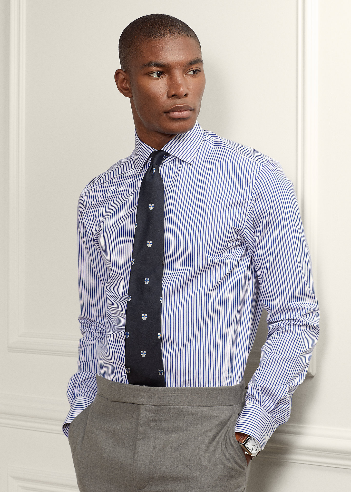 - Split pleated back yoke ensures smooth, contoured shoulders.