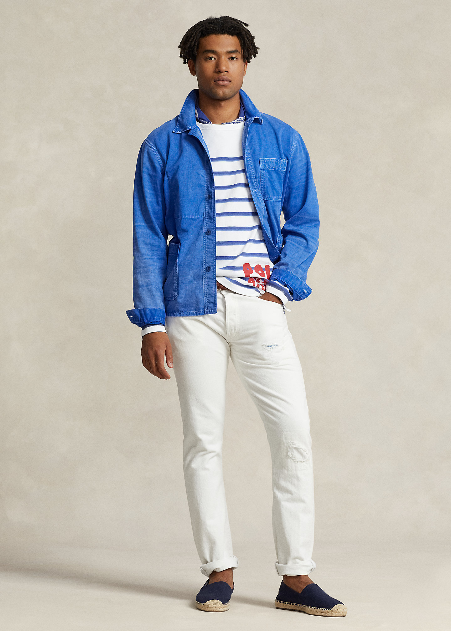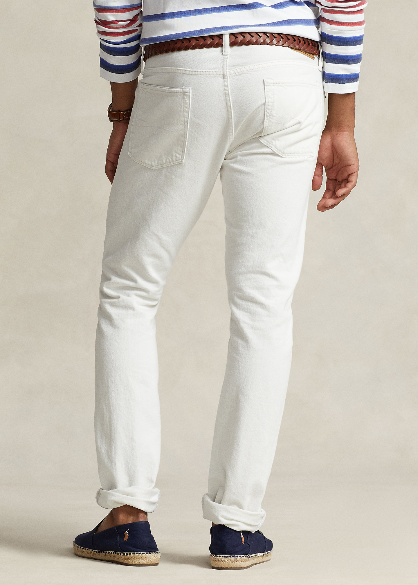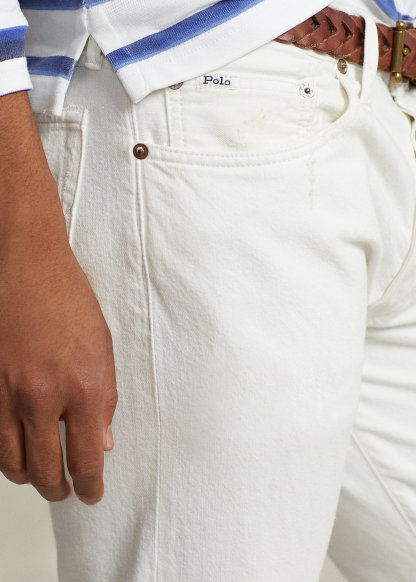- Five-pocket styling with signature metal rivets. "Polo" label at the coin pocket.