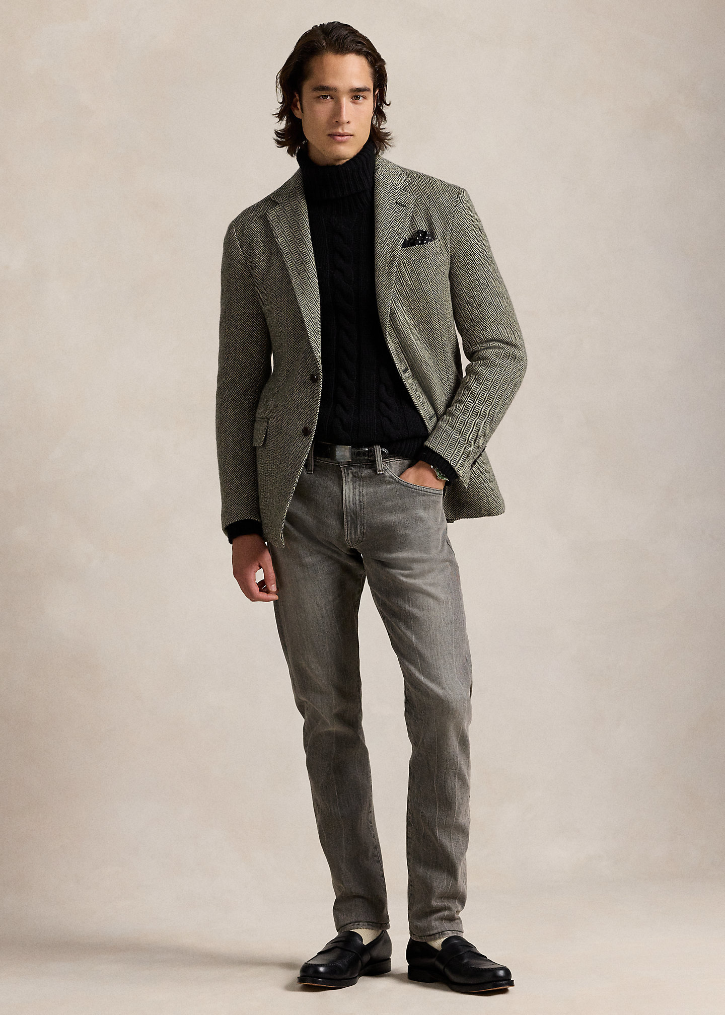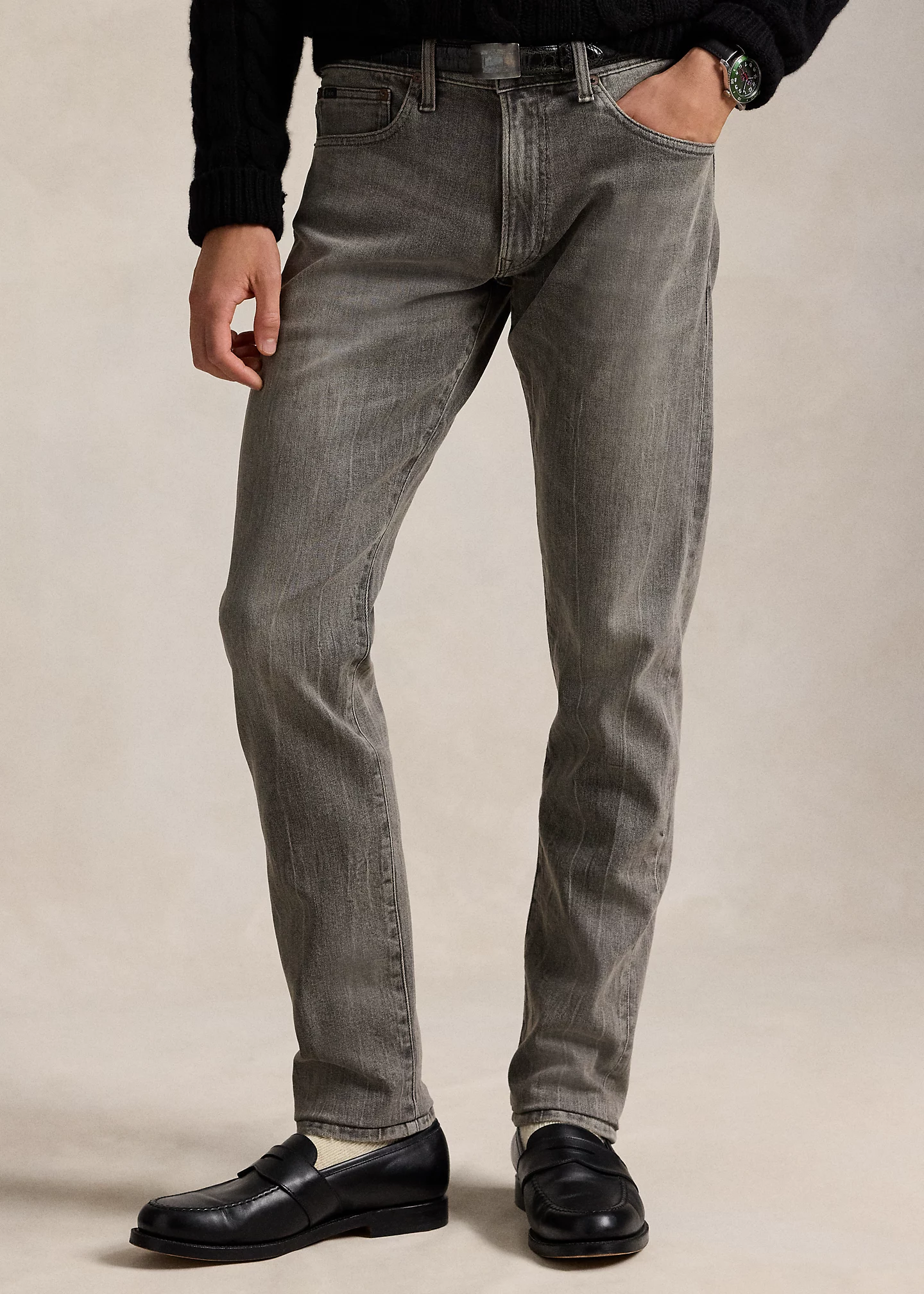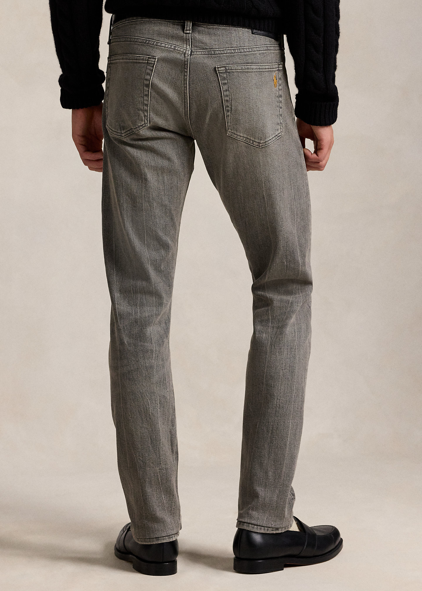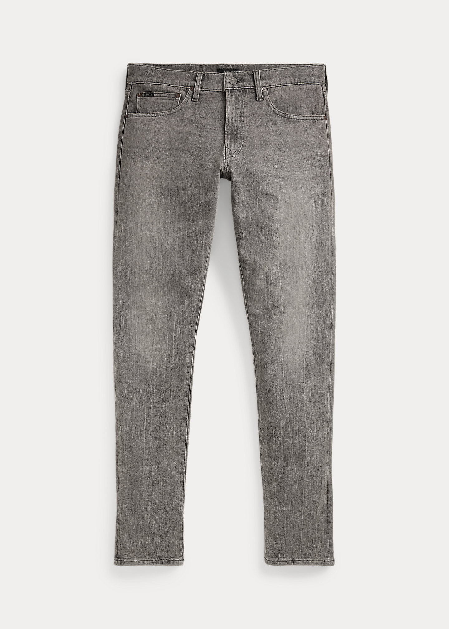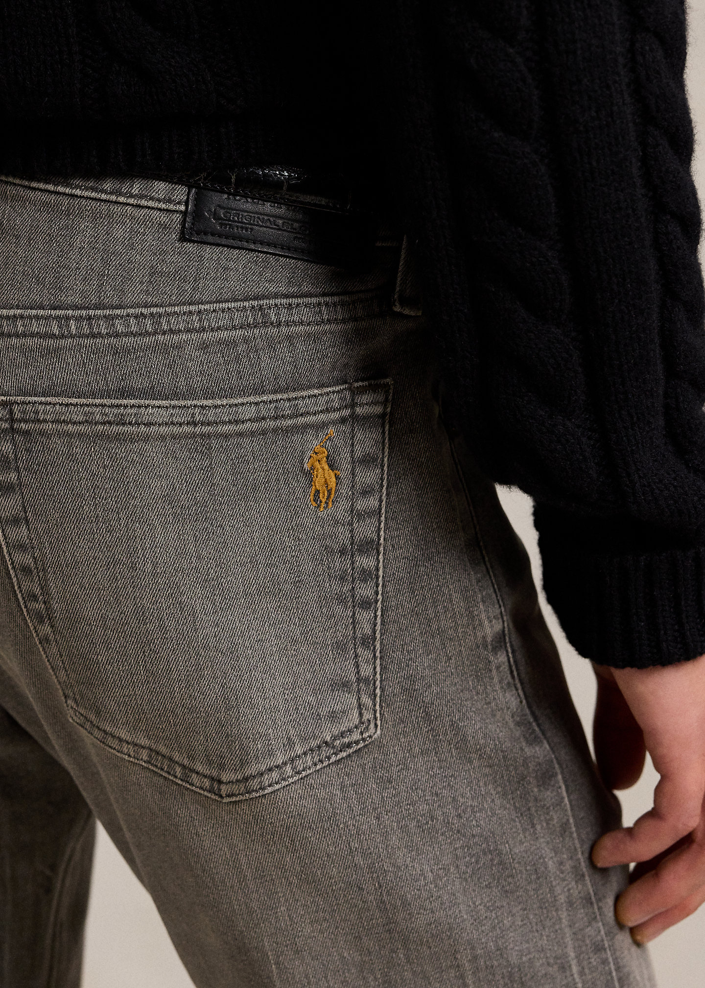- Five-pocket styling with signature metal rivets. Leather “Polo Ralph Lauren” patch at the back right waist.