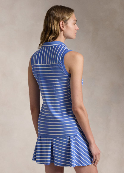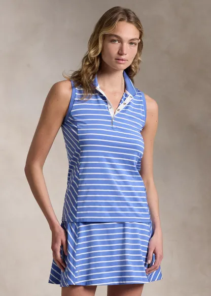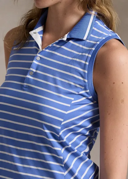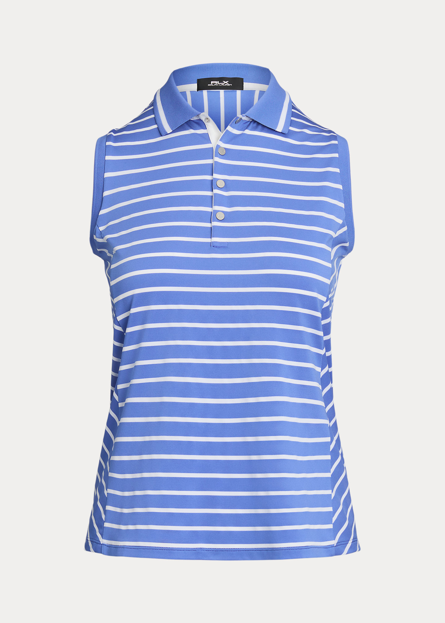 - Ribbed Polo collar with striped tipping. Four-snap placket. “RLX”-engraved metal snaps.