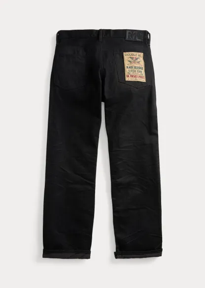- American-made buttons, copper-tone rivets, and washer burrs. Five-pocket styling. “RRL” embroidery at the selvedge coin pocket. Natural cotton twill pocket lining. Roughout suede “RRL”-debossed logo label at the back right waist.