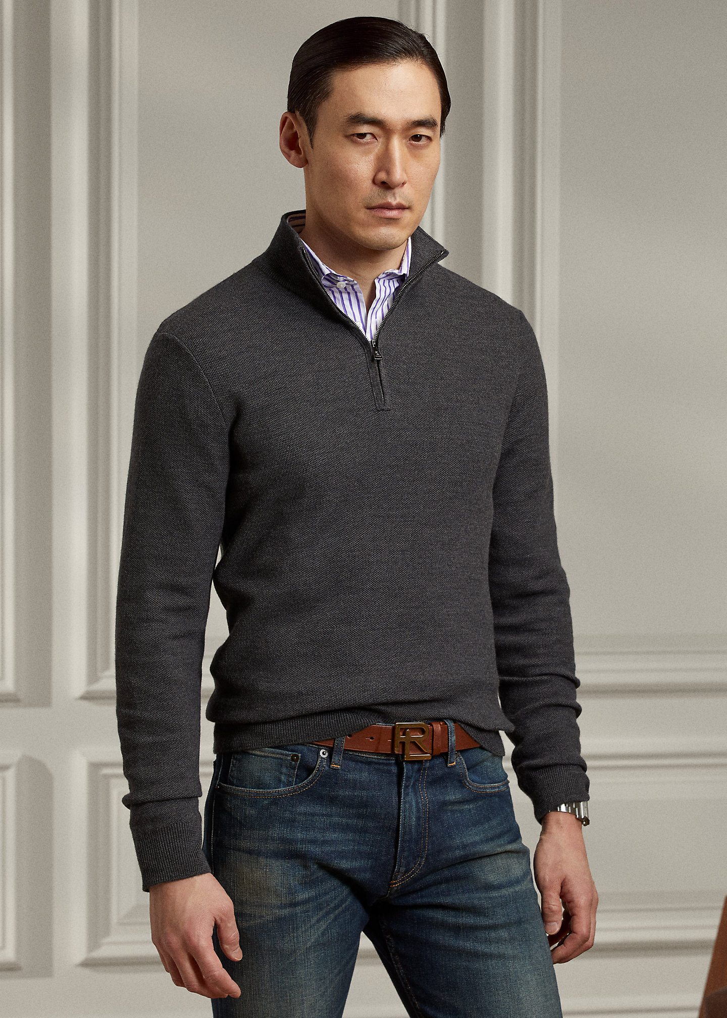 Wool Piqué Quarter-Zip Sweater